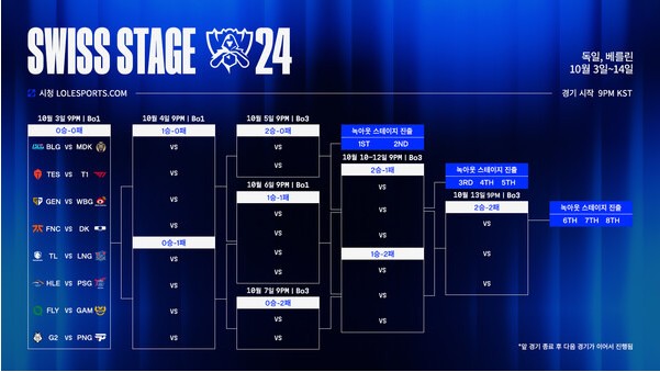 본격적인 본선이라 할 수 있는 스위스 스테이지는 10월 3일부터 10월 14일까지 진행됩니다.